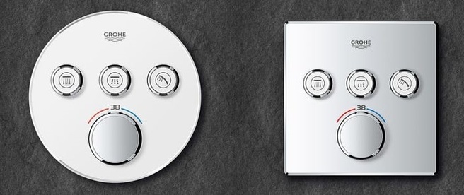 Прихований елемент GROHE SmartControl виготовляють в двох різних конфігураціях - квадратної і круглої. Крім того, можливі два стильових рішення: з тонкими деталями в кольорі moon white в акриловому склі, або в традиційному хромованому. Будь-яке з них бездоганно підійде до окремої лінійці продукції від GROHE.
